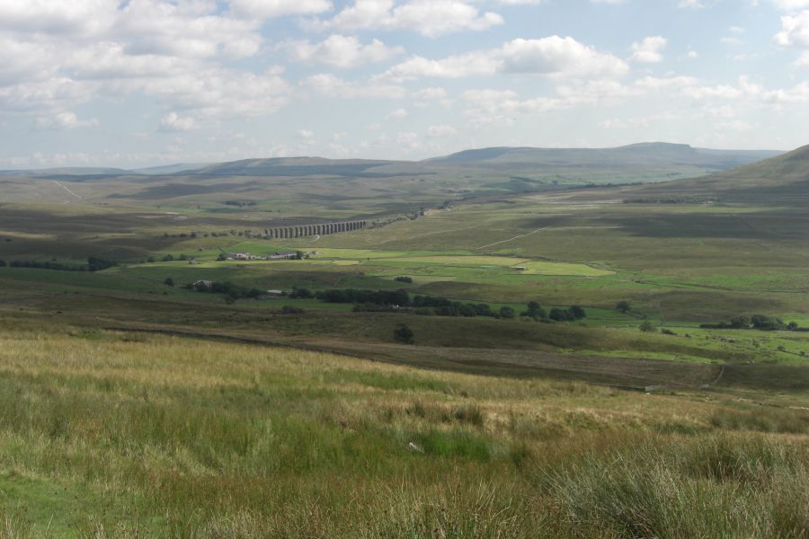 View across the dales with the railway viaduct in the distance