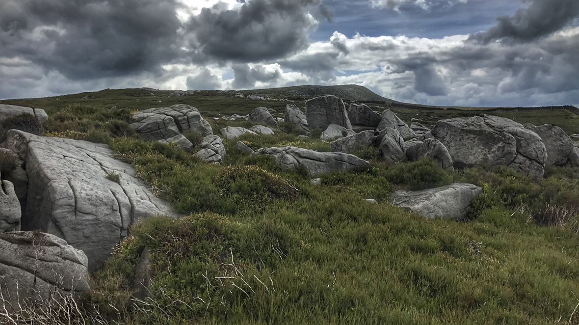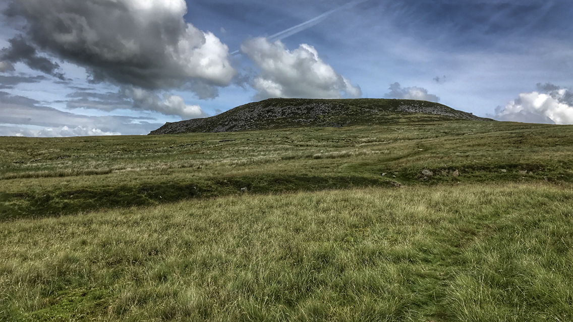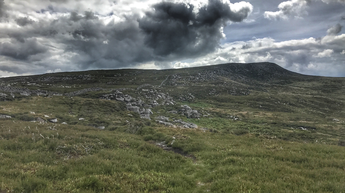 Moody skies but a lovely rock strewn easy climb to the summit