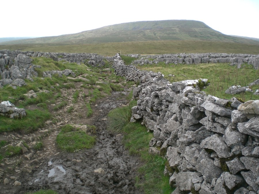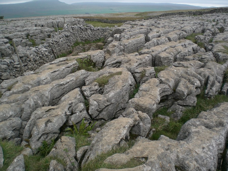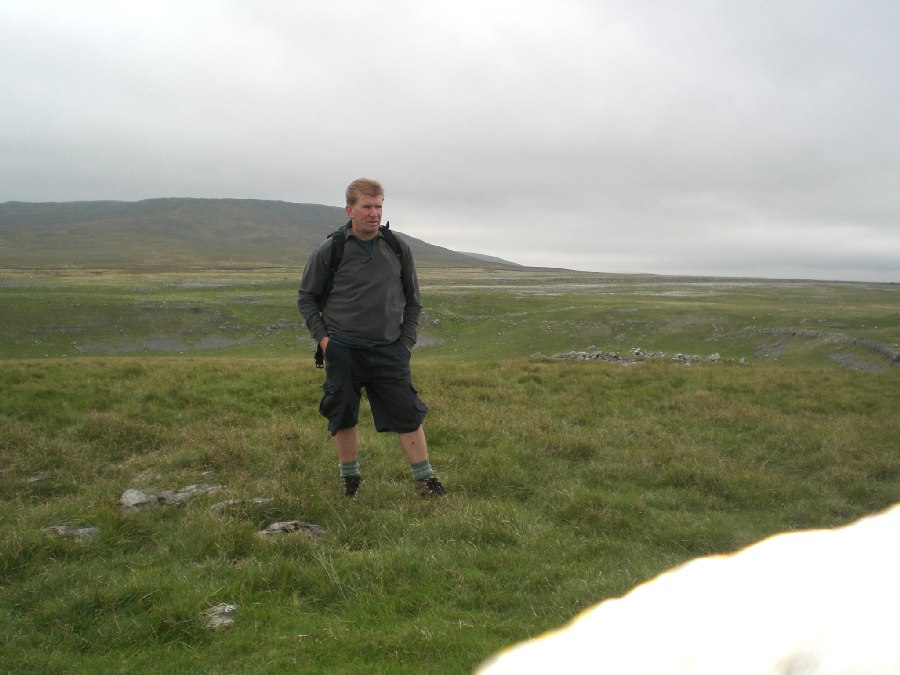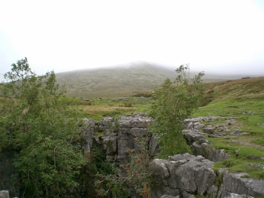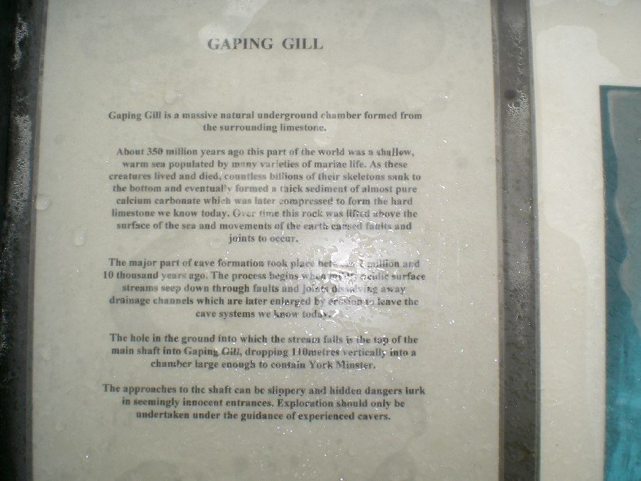 Ingleborough Cave, apparently the best showcave in Britain !! Heading into Trow ghyll Gaping Ghyll A 300 feet drop The climb onto Ingleborough The view towards pen y ghent. No view from the summit of Ingleborough today. Limestone pavement at Sulber Looking back to Ingleborough Trevor !! he gets everywhere this bloke Back in Clapham Back to top of page