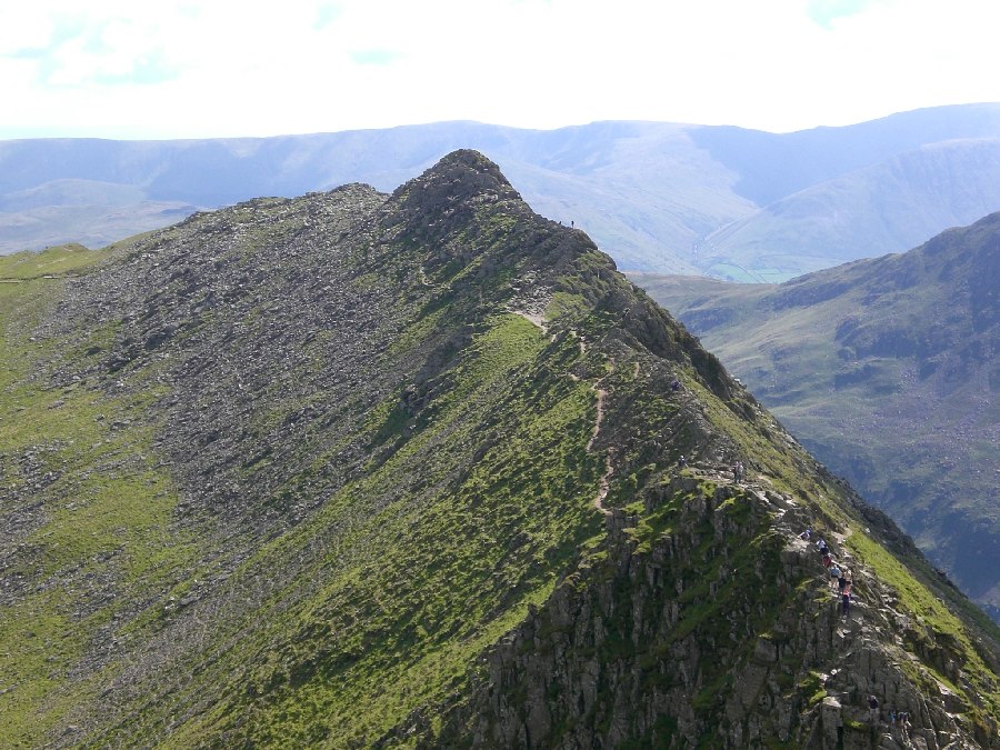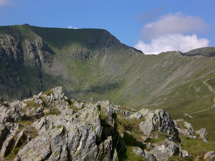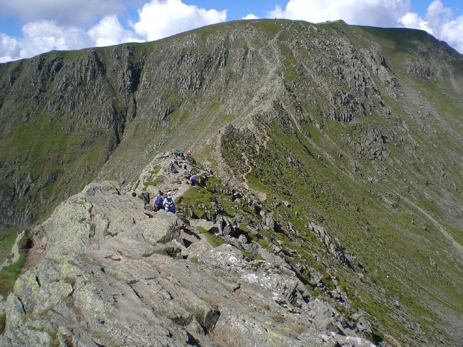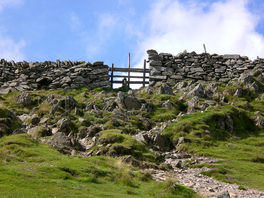The famous "hole in the wall" stile where several paths meet, and the start of the climb to Striding Edge |