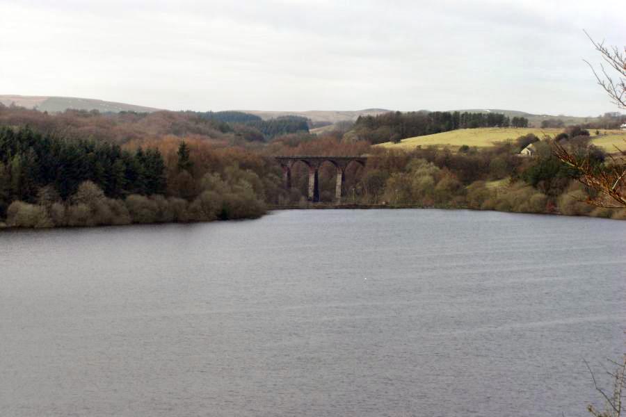 Wayhoe Reeservoir with the railway viaduct at the far end