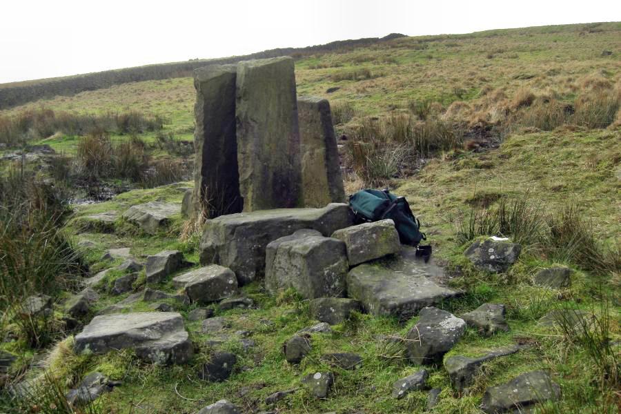 The Trig point of Cheetham Close, with Anglezarke in the background